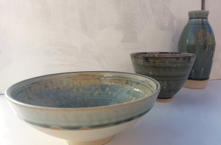 Nach einer intensiven Experimentierphase kristallisieren sich nun einige Kreationen heraus, die ich auch in Serie und als Gebrauchsgeschirrserien entwickeln werde. Dazu bald mehr eingestellte Fotos und im Shop. Es gibt beim Scheibendrehen immer die notwendige Zentrierung die meditativ wirkt, aber auch das Formen-Repertoire eingrenzt. Man kommt so immer wieder auf klassische, aber individuell aktualisierte Formen zurück. Das ist Vielfalt und unendliche Spielwiese in der Begrenzung zentral rotierender Bewegung. Am liebsten drehe ich Vasen mit schönen Silhouetten und Schalen in allen Größen. Es ist alles für den Gebrauch gedacht und geeignet und zugleich sind das Werte an sich.